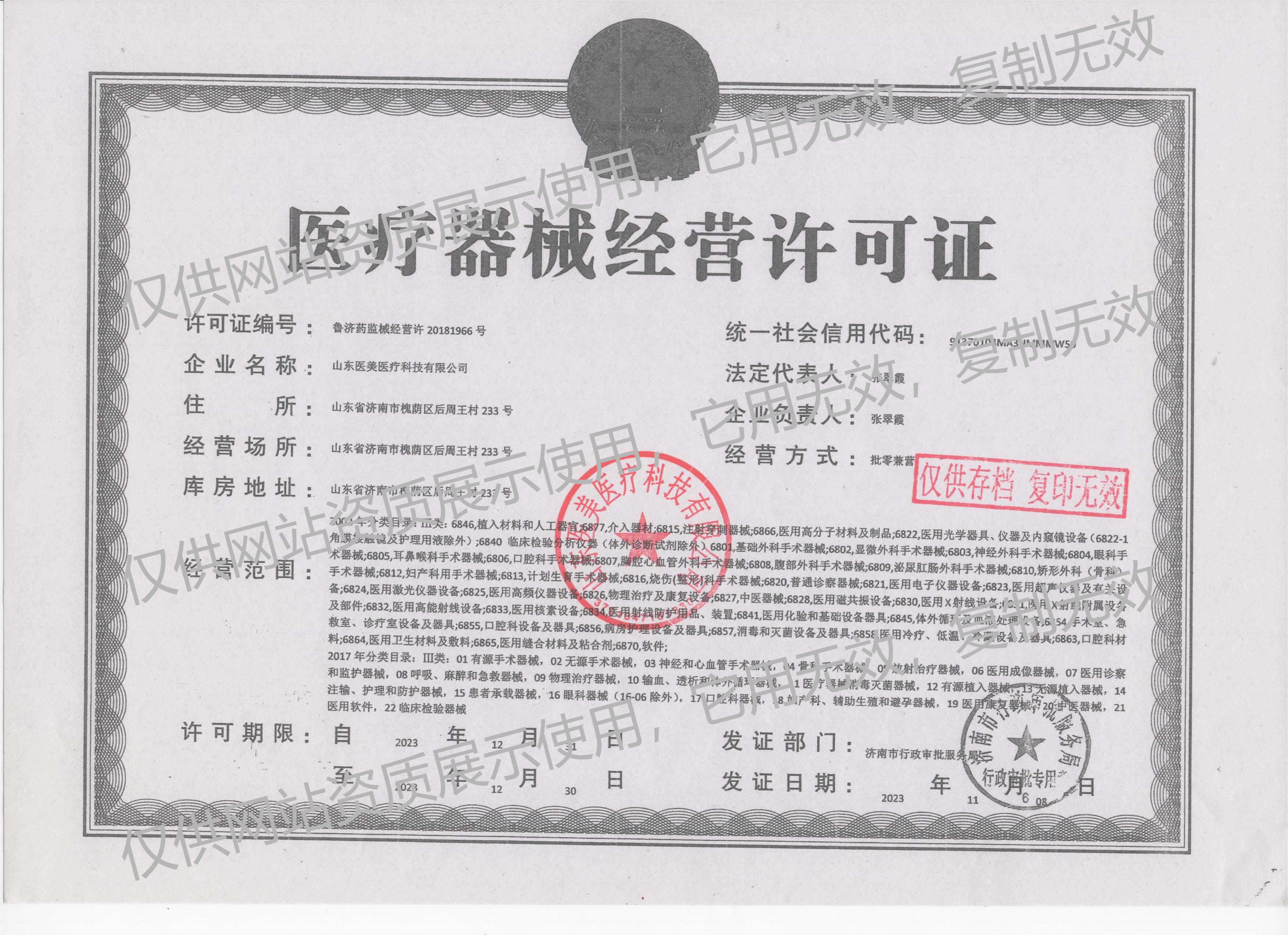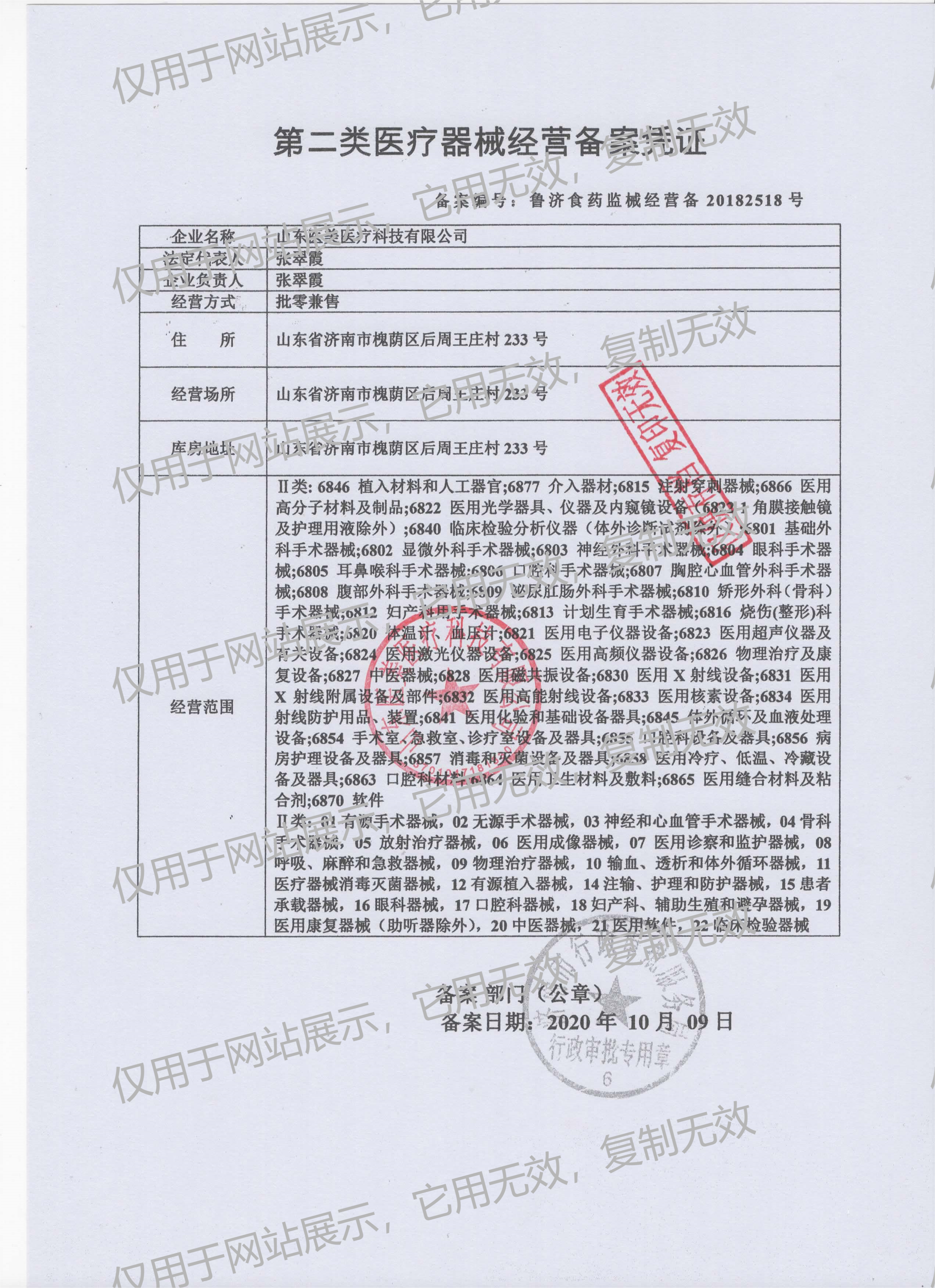 ● 2018年12月經(jīng)濟(jì)南市食品藥品監(jiān)督管理局審批取得Ⅱ類醫(yī)療器械經(jīng)營(yíng)憑證;