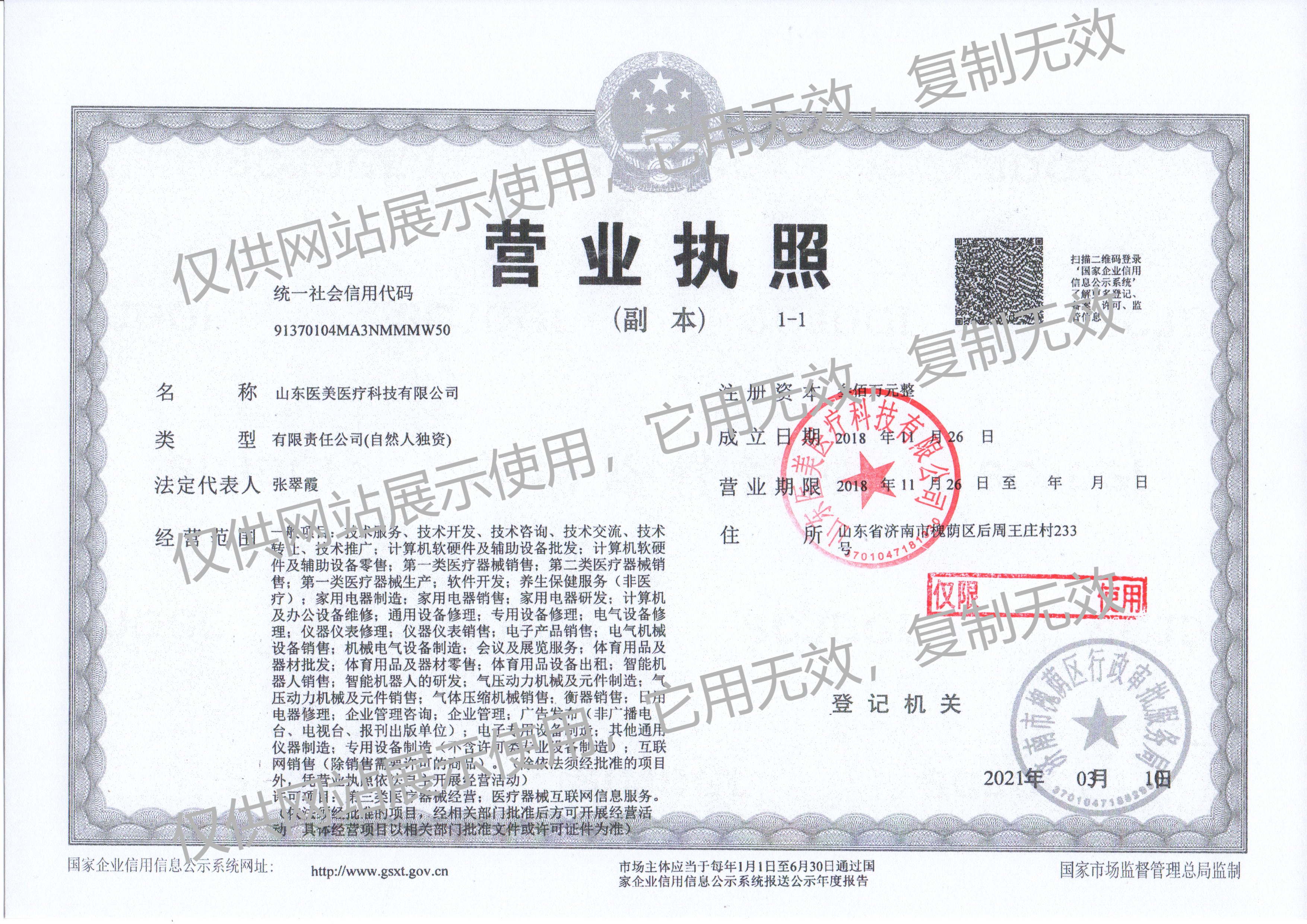 ● 2019年01月通過(guò)濟(jì)南市醫(yī)療器械網(wǎng)絡(luò)銷售備案,信息公示信息:(第2019002號(hào));