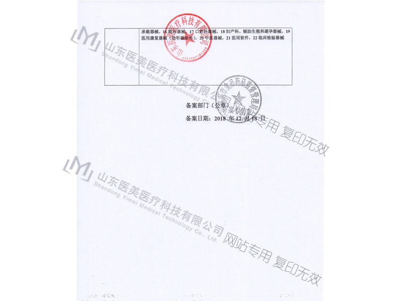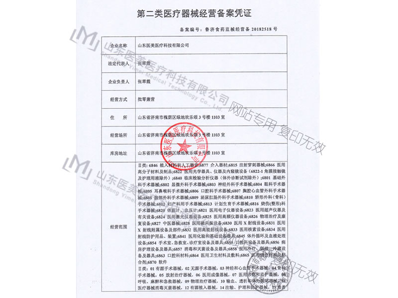 山東醫(yī)美醫(yī)療科技有限公司于2018年12月取得第二類醫(yī)療器械經(jīng)營備案憑證;